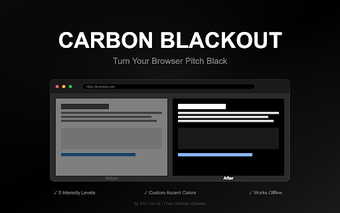 Karbon Blackout, her web sitesini derin siyah bir arka plana dönüştüren güçlü bir Chrome uzantısıdır. Bu uzantı, göz yorgunluğunu azaltarak ve OLED ekranlarda pil ömrünü uzatarak kullanıcı deneyimini iyileştirir. Kullanıcılar, üç farklı yoğunluk seviyesinden (Hafif, Orta veya Tam Kapatma) birini seçebilir ve stiline uygun vurgulayıcı renkleri özelleştirebilir.